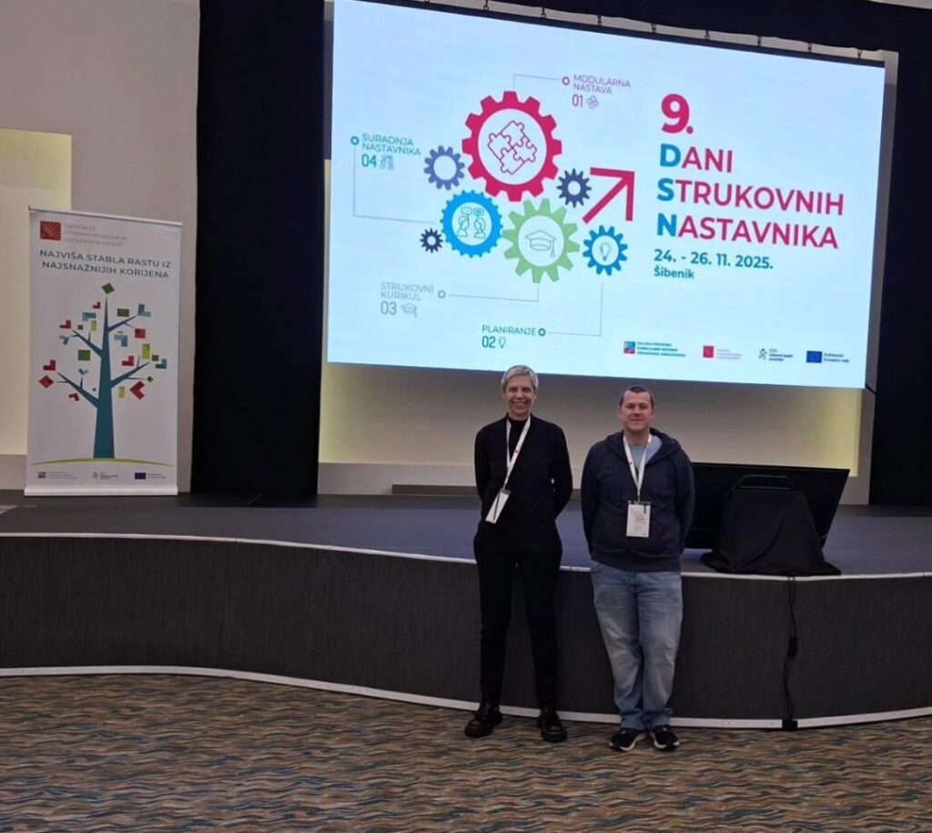Našu školu predstavljali su nastavnici Josip Cicvarić i Tamara Sapanjoš. Sudjelovanjem na ovom velikom skupu, imali su priliku čuti niz novosti vezanih za modularnu nastavu i primjenu umjetne inteligencije u obrazovanju koje će prenijeti svojim kolegama u školi.