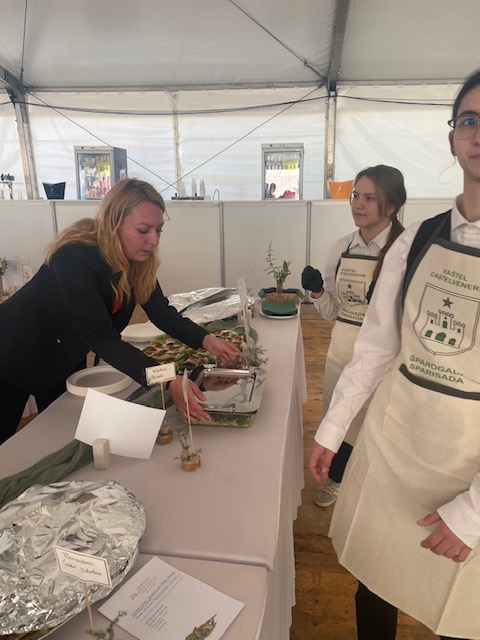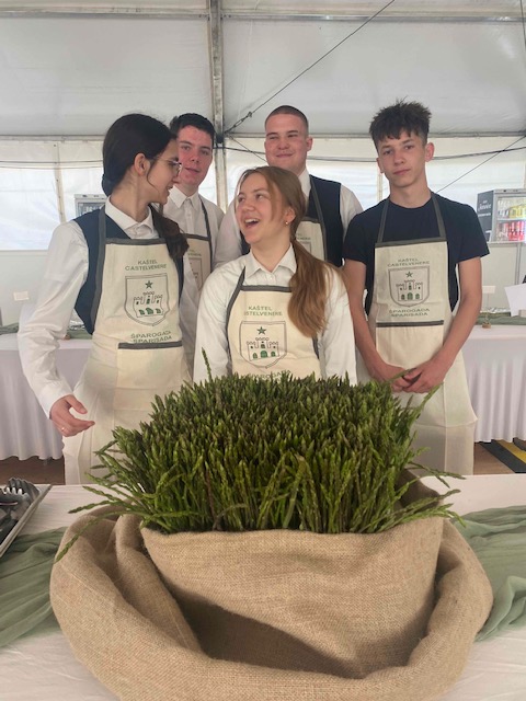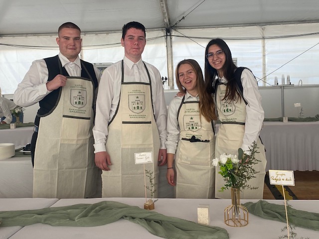 Degustacije jela od šparoga posluživali su i naši učenici, konobari 2.C razreda: Eyla P., Anđela V., Luka K., Tin T. i učenik 1.C Andis I. pod vodstvom stručne učiteljice Mersihe Grgić.